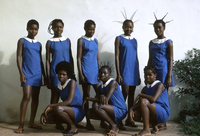 49-99 simply means 49 sitting and 99 standing, it’s a phrase from the great late Fela Kuti’s “Shuffering and Shmilling” album. The phrase translates to the struggles and hardships Nigerians have encountered since the 1900’s. To break down the phrase more thoroughly, in Nigeria many people primarily used busses as their mode of transportation which would consist of 49 passengers sitting and 99 standing a double amount of the people sitting. This was caused not only by poverty, but by the economic issues Nigeria had at that time. The cover photo and the visuals were inspired by portraits of Students wearing blue and white school tunics at Protestant Secondary School in Mbandaka, Congo that were captured in 1972 by Eliot Elisofon.