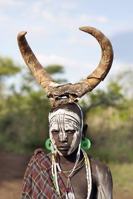 The Mursi or Murzu are a tribe found in Ethiopia, they are best known for their head dresses, lip plates and wearing buffalo horns ontop of their heads. “The Mursi women are very creative with their ornaments. They use face and body paint, beads, horns, and scarification. The more ‘decoration’ women use, the more attractive they feel, and the more attractive they actually are to men.”