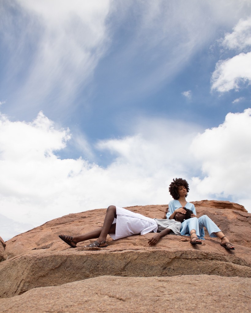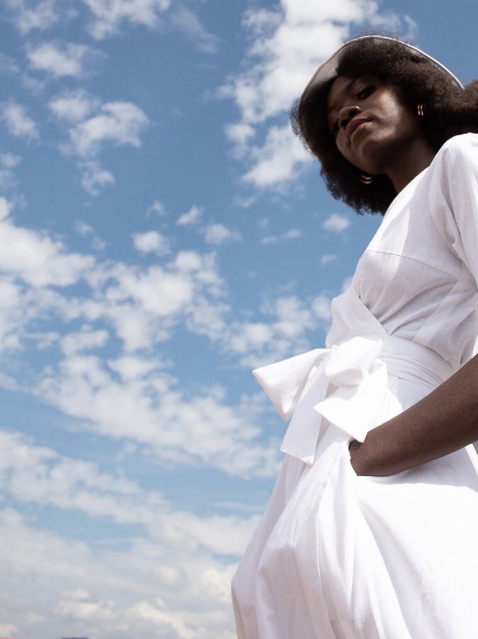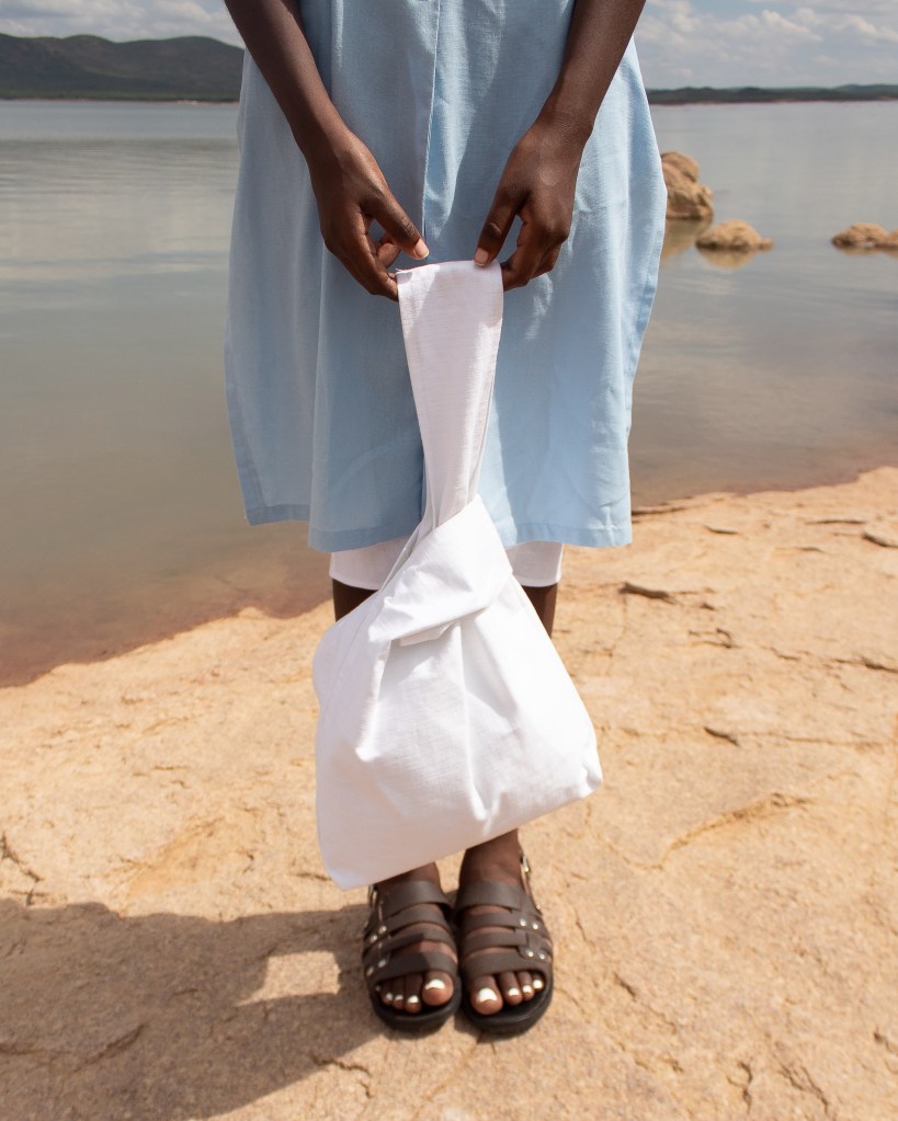 Every piece in this collection has been ascribed to the beautiful names we’ve been given in Setswana, said Sabine. The collection ranges from knot bags, bucket hats, tunic and wrap dresses. This spring/summer collection consists of the Gofaone Knot Bag, Botho Wing Blouse, Ngwedi Wrap Skirt, Maru Sun Hat, Lesedi Fold Jacket, Lora A-Tunic, Motlalepula Split Tunic, Motlalepula Slack Pants and the Lesego Wrap Dress. When I first opened the press packet sent to me by Sabine, and going through it, the editorial shoot and the look and feel of the entire collection gave me Lulama Wolf and Keneilwe Mothoa energy and a hint of Ayanda Phola Gumede, but with a pair of clean kicks.