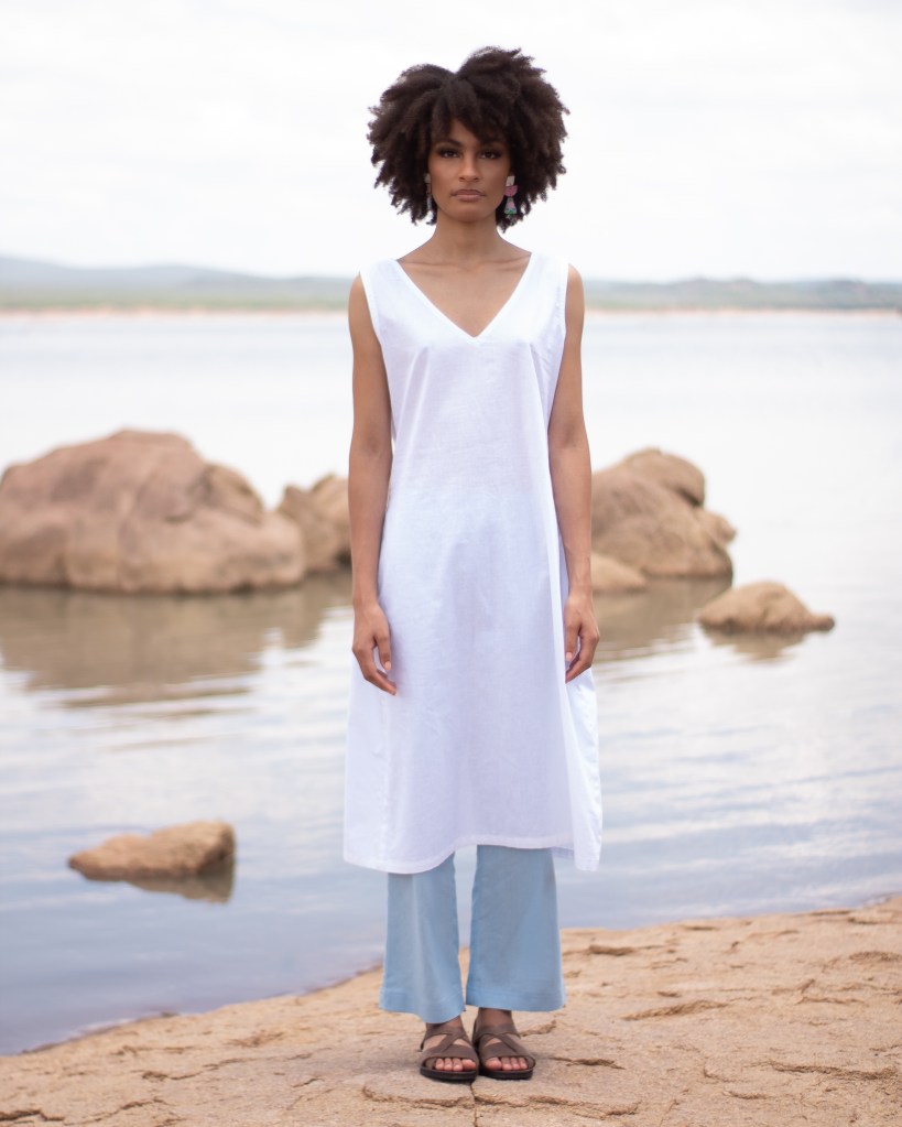 “The fabrics used to create this collection are all organic and have been carefully constructed by local craftspeople, in linen, rayon and cotton. These natural fabrics allow our bodies that carry garments, to breathe, and the earth to, too. They’re light and airy, with touch to structure in its lines. Each piece is made to be worn interchangeably with one another, plain or adorned.”