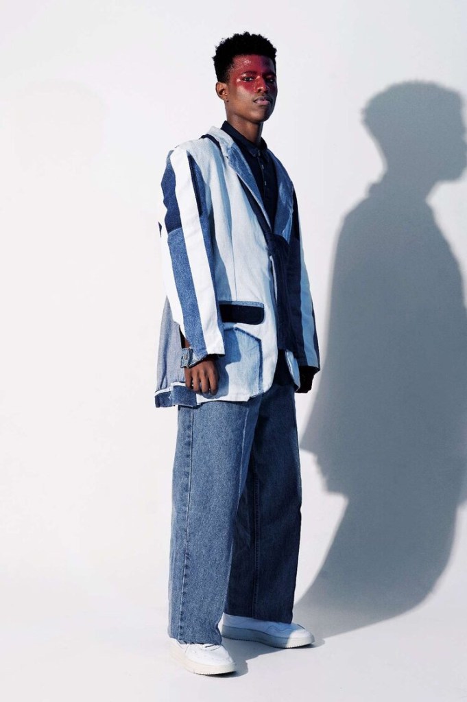 “EVERYTHING IS A SAMPLE’ is a collection of upcycled one-off pieces created in partnership with Levi’s® South Africa. The collection expresses my love of denim and utilitarian wear by reconstructing pieces from the Levi’s® in-line catalog as well as thrifted pieces throughout my years.” – Xzavier Zulu