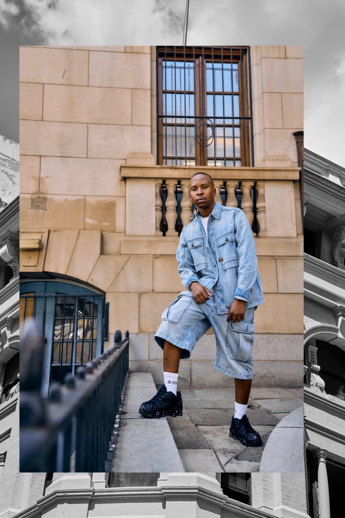 G-Star RAW has long been known for its denim expertise, with pieces that elevate casual wear through clever cuts, unique treatments, and signature details like oversized pockets and structured fits. This season’s collection is no different, with the Long Pocket Loose Jeans and Utility Overshirt leading the charge. Lethabo Motlale brings his streetwear A-game in these key pieces, showing how G-Star’s focus on quality denim meets effortless style. The relaxed silhouette of the jeans, combined with the structured layering of the Utility Overshirt, proves that utility wear can be both functional and fashion-forward. Paired with a New York Yankees cap and oxford-inspired “dad formal shoes,” Lethabo captures the essence of G-Star’s modern, yet timeless street style.